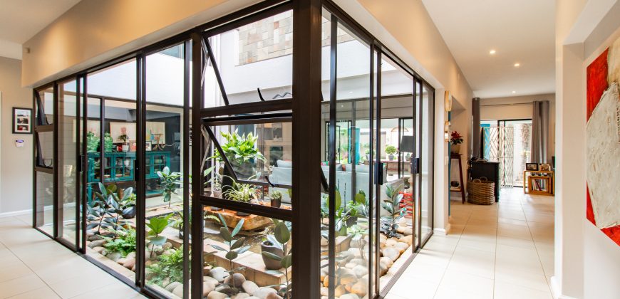 Beautiful atrium is the heart of the house bringing in natural light and a sense of tranquility